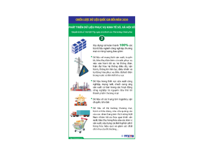 Chiến lược dữ liệu quốc gia đặt mục tiêu đến năm 2030, 100% các Trung tâm dữ liệu quốc gia, Trung tâm dữ liệu vùng, khu vực, Trung tâm cấp quốc gia về lưu trữ dữ liệu lớn và tính toán hiệu năng cao trên cả nước được bảo đảm kết nối thành công, tạo thành một mạng lưới chia sẻ năng lực tính toán, xử lý dữ liệu lớn phục vụ cho phát triển kinh tế - xã hội, văn hóa của đất nước...